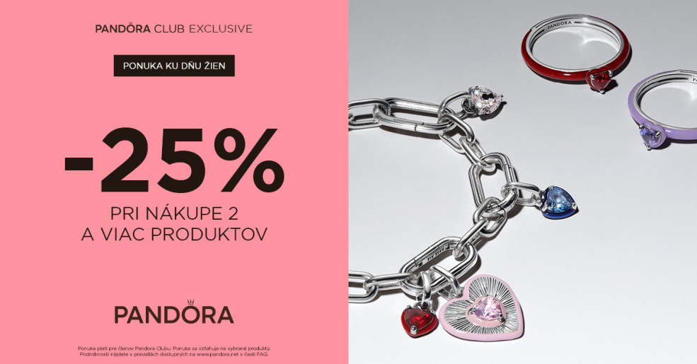 CLUB DAYS PANDORA - pri nákupe 2 a viac produktov zľava 25% na celý