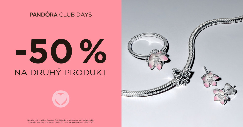 Nakúpte 2 produkty a získajte druhý, lacnejší s 50% zľavou. Platí pre vybrané produkty. Detaily akcie sú dostupné v predajniach, alebo na pandora.net.