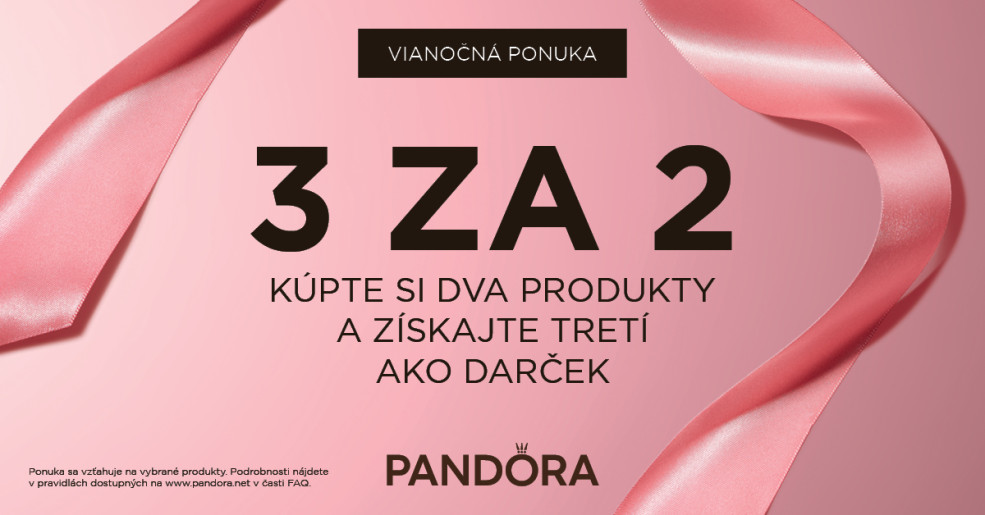 Pri nákupe troch kusov tretí, najlacnejšÍ ZADARMO. Akcia sa vzťahuje na vybrané produkty. Podmienky akcie sú dostupné v predajniach, alebo online na pandora.net