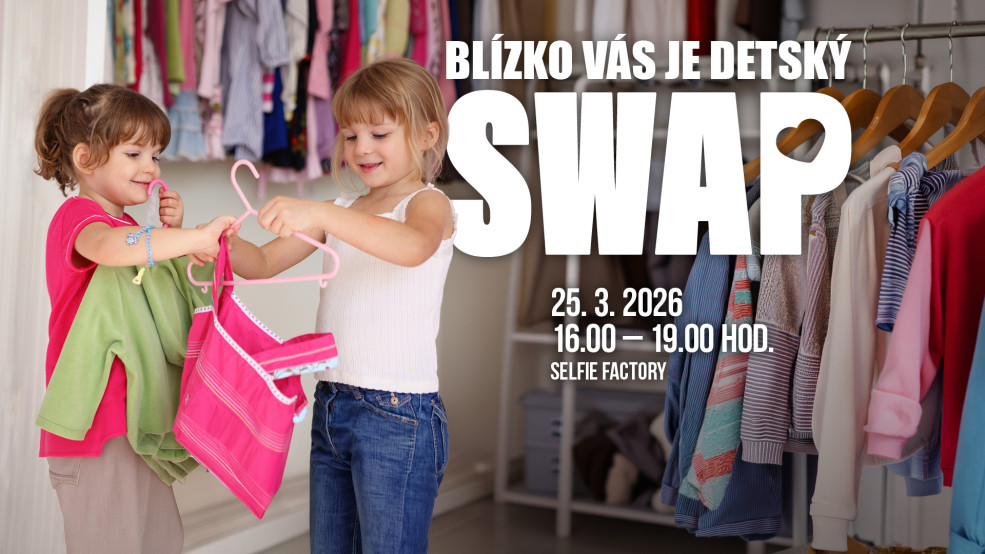 Tešíme sa na vás 25.3 o 16:00 v priestoroch Selfie Factory, ktoré nájdete na prízemí medzi predajňou New Yorker a C&A. Vstup na podujatie je zdarma, prineste so sebou však minimálne 1 detskú vec alebo 1 hračku na výmenu.