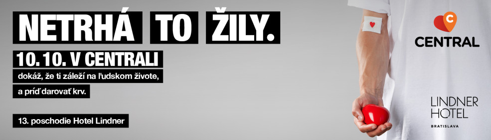 Odber krvi, prebehne na 13. poschodí v hoteli Lindner v Centrali dňa 10.10 od 8 ráno do 11 hod. Ľudia budú mať možnosť prísť, na mieste sa zaregistrovať a darovať krv s najkrajším výhľadom na Bratislavu